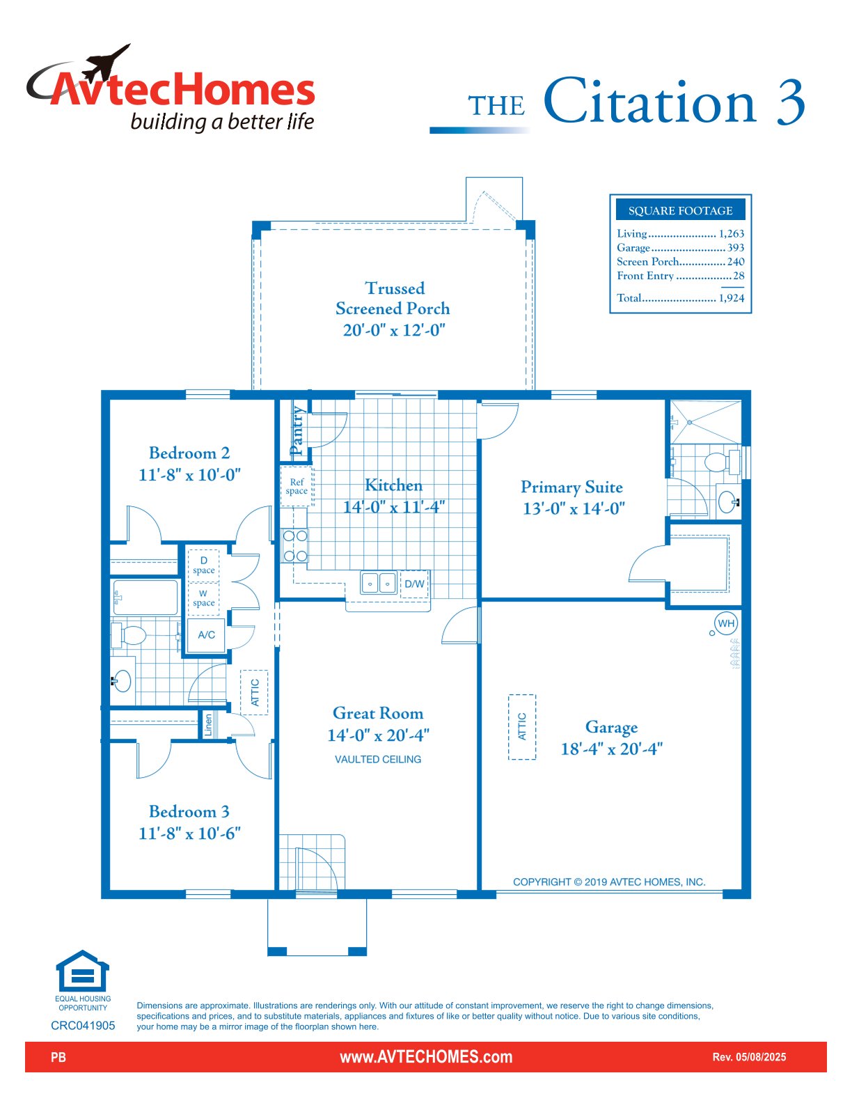 Your monthly payment includes a fully prepped and sodded homesite, concrete block construction, birch cabinetry, deluxe appliances, a two-car garage, 10-year structural warranty and more. Don't wait another minute. Call and see if you qualify for a brand new three-bedroom, two-bath Citation 3 home --today!
