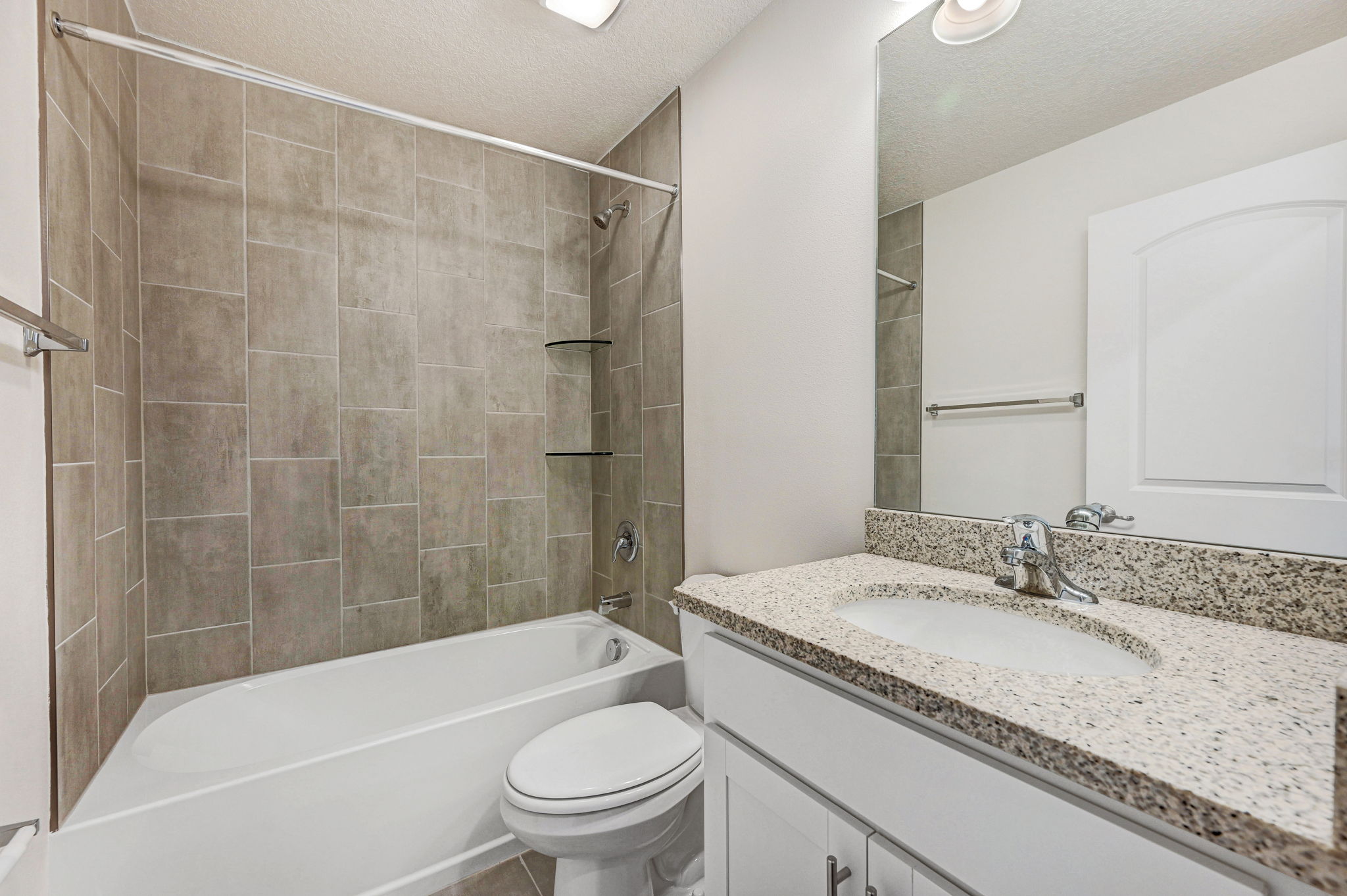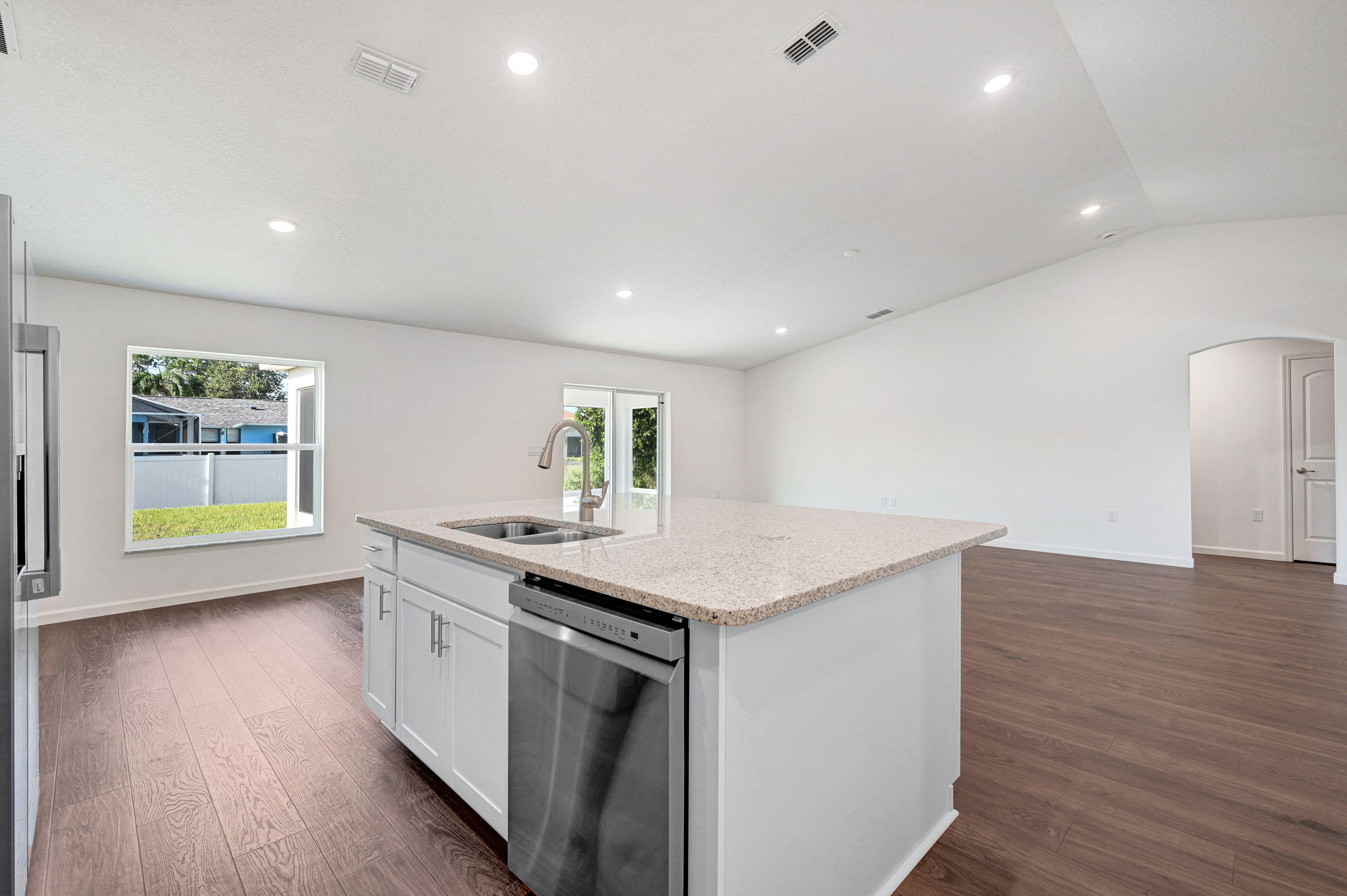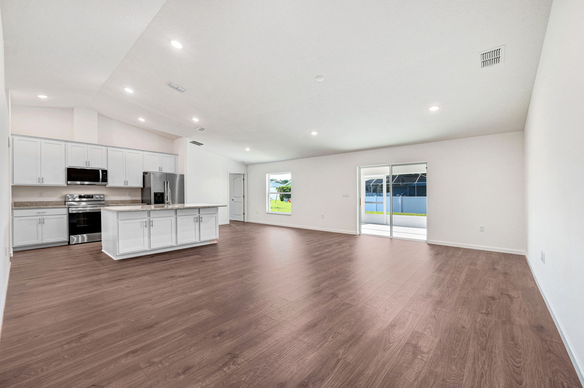 Brand new construction! This beautiful 3 bedroom, 2 bath home with den/office and 20 X12 trussed screened porch is ready now! The exterior boasts stone trim and a raised entry for standout curb appeal. Inside, Mohawk Revwood plank flooring flows throughout, with tile floors in baths and the inside laundry. The island kitchen features stainless appliances, including a 25 cu. foot fridge, and level 2 cabinets with crown molding while the primary suite features a tray ceiling with dimmable LED lighting, a massive walk-in closet and a large, tiled shower. Additional highlights include level 2 granite countertops in kitchen and baths, rounded drywall corners, backyard floodlights, attic stairs, and R-38 insulation with radiant barrier. 1-year builder and 10-year structural warranty included.