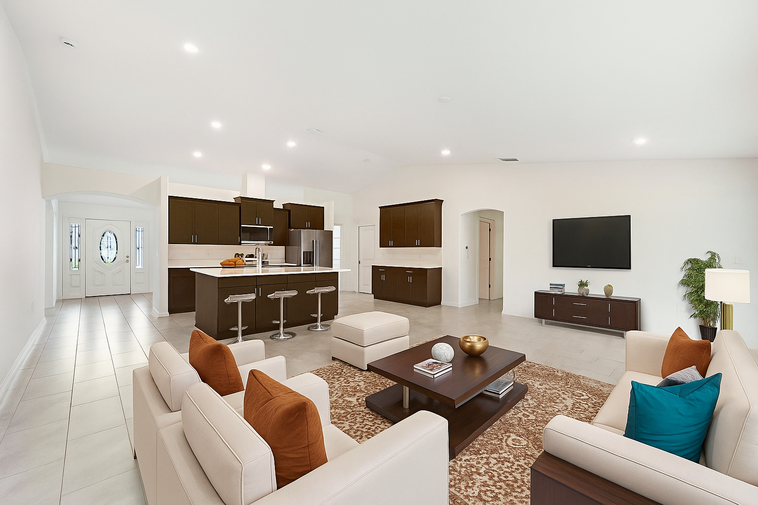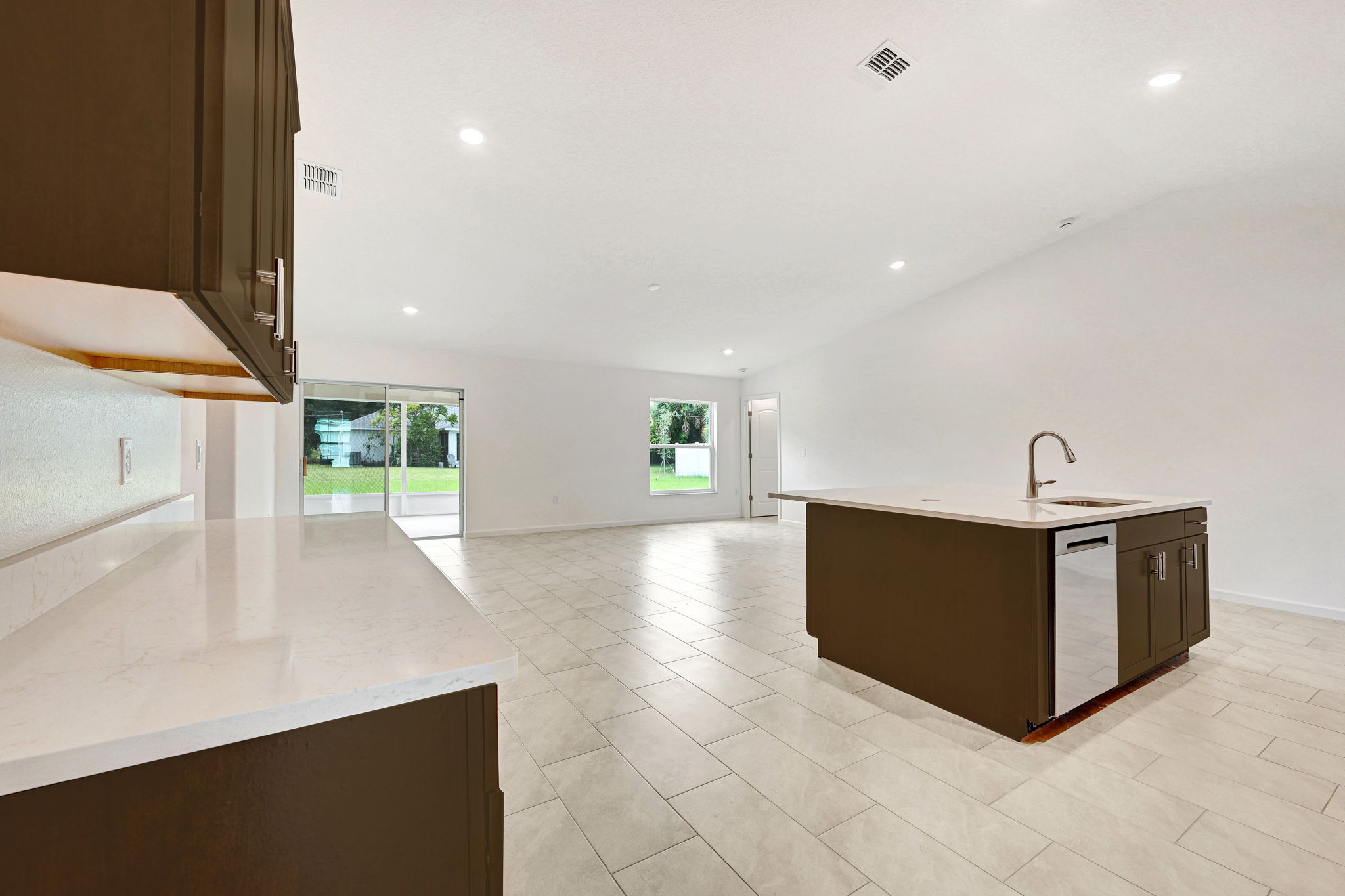 Brand-New City Water Home! 3BR/2BA, Den, 2-Car Garage + 20x12 Trussed Covered Screened Porch for outdoor entertaining. Exterior Stone Accents add curb appeal & welcome you into the open-concept home. The Island Kitchen features level 2 Staggered Cabinets with Soft Close & Crown Molding, Stainless Appliances (including a 25 cu. ft. Side x Side Refrigerator) + Huge Pantry & Microwave Hood Vents Outside. Quartz Countertops run throughout the home as do the Tile Floors. The primary suite offers a Tray Ceiling, Dimmable LED lighting, a Massive Walk-In Closet & a Tiled 5' Shower with a Decorative Listello. Other features include Inside Laundry with Overhead Cabinets, Raised Height Toilets, Garage Door Opener, LED lighting in the Family Room, Attic Stairs, Rear Floodlights, Rounded Drywall Corners, & Energy-Saving R-38 insulation with Radiant Barrier + 1 yr Builder/10 yr structural warranty.